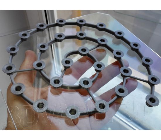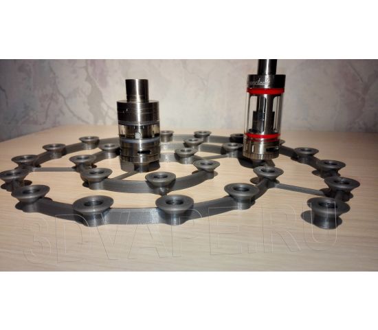 Stand SPIRAL (Archimedean spiral - https://ru.wikipedia.org/wiki/Archimedova_spiral). The stand is designed to install 29 atomizers (tanks / drips) with a standard 510 connector. Author's model of Korolev Eugene (Russia, 3DVAPE.RU) from July 1, 2016.